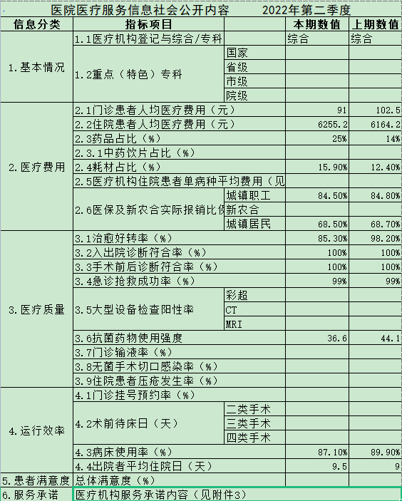 淮北朝陽醫(yī)院2022年第二季度醫(yī)療服務(wù)信息公開.xls