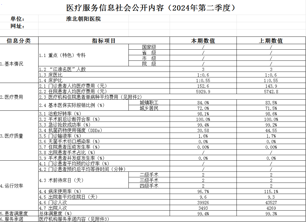 淮北朝陽醫(yī)院醫(yī)療服務信息社會公開內(nèi)容(2024年第二季度)